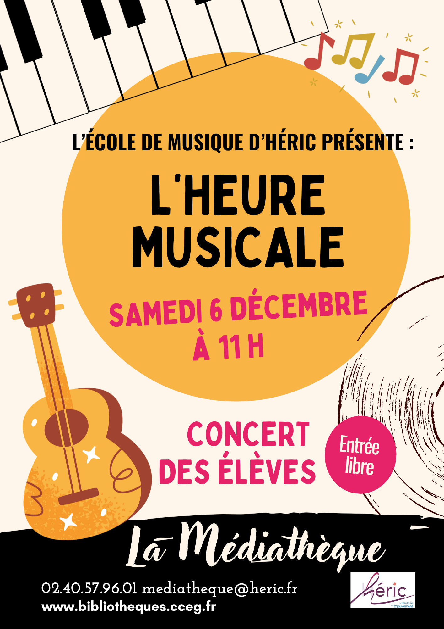 Samedi 6 décembre à 11h à la Médiathèque : heure musicale, concert des élèves d’Héric musique